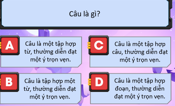 Đáp án: A. Câu là một tập hợp từ, thường diễn đạt một ý trọn vẹn.