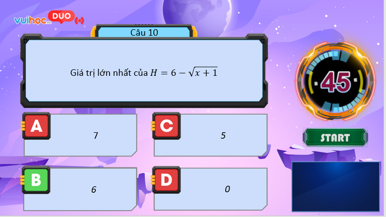 Do đó $6-\sqrt{x+1}\le 6$ hay $H\le 6$