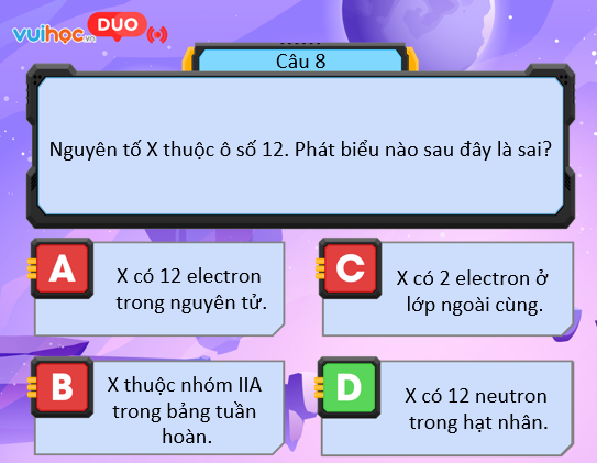 Giải: Nguyên tố X thuộc nhóm IA → có 1 electron lớp ngoài cùng.